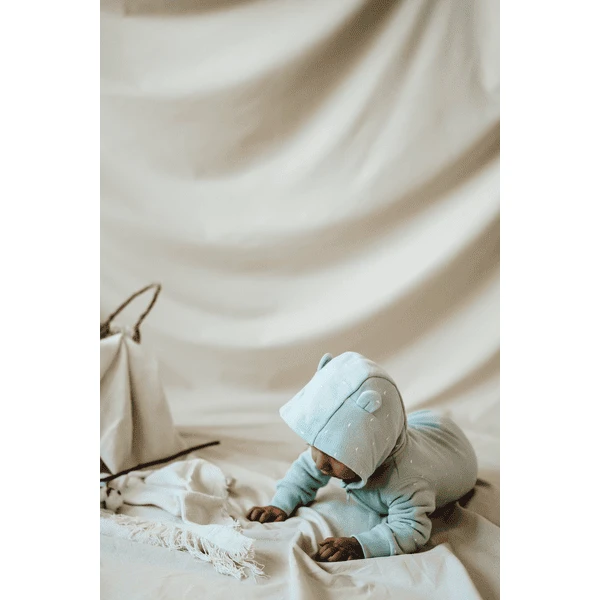eingekleidet und von außen mit zwei Teddyohren versehen - Einfaches An- und Ausziehen: Der Reißverschluss verläuft von der Brust bis